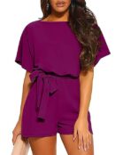 LEMDANNU Womens Summer Casual Short Sleeve Belted Romper Shorts Jumpsuits Playsuit