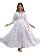 M32-PRESENTING Our New Launching in Beautiful Long Gown Rayon Fabric Print Embroidery Work gota Work Anarkali Gown for Women and Girls White
