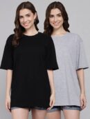 Pack of 2 Women Solid Round Neck Cotton Blend Black, Grey T-Shirt